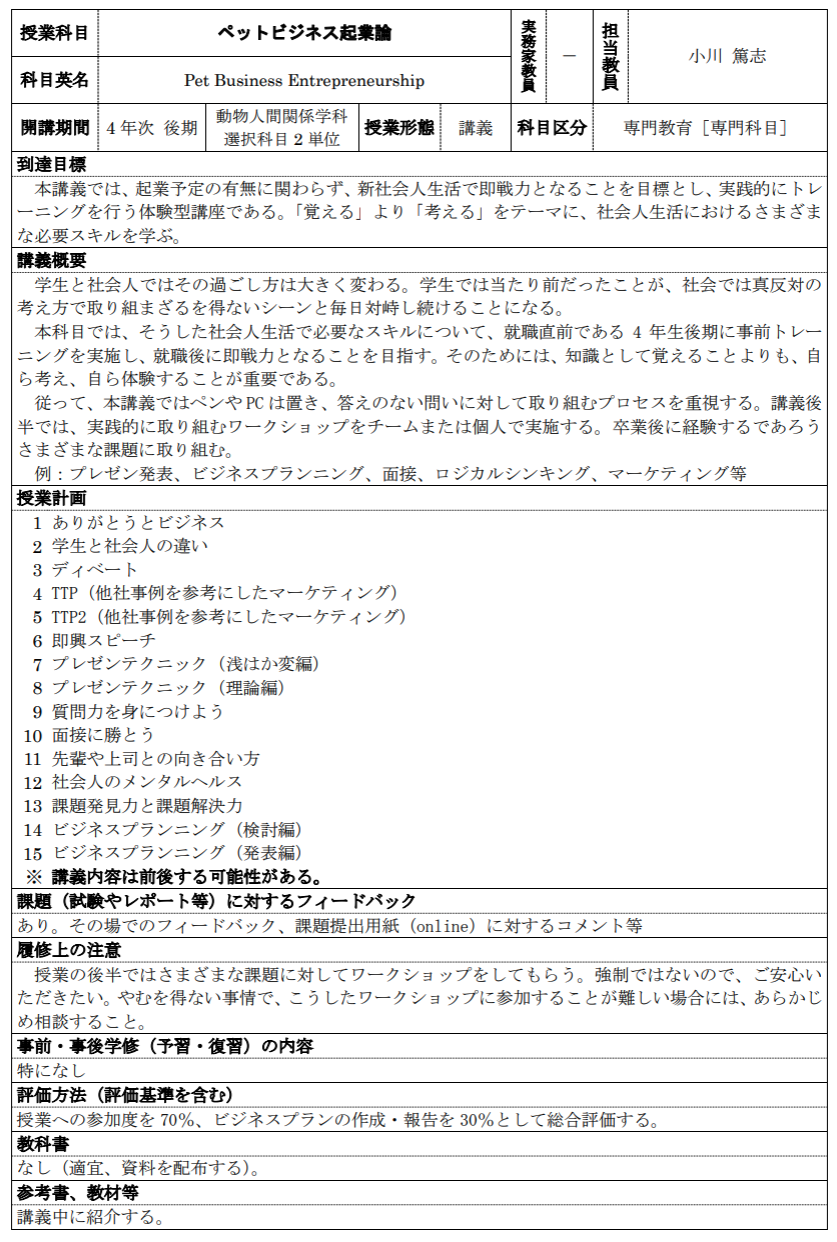 ペットビジネス起業論_2025年度後期 ...
